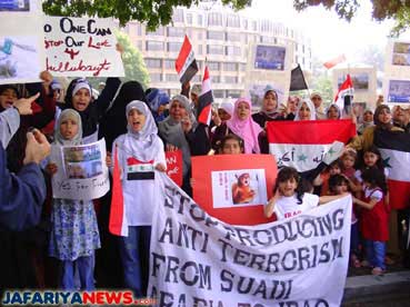 CANBERRA, Australia: For the second time, Iraqis in Australia staged a demonstration in front of Saudi embassy in Canberra to protest against Saudi clerics’ fatawa that instigate for demolishing holy shrines and aggression against innocent Iraqis.