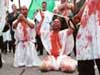 BEIRUT, Lebanon: Performing Tatbeer (causing blood to come out from heads by swords to signify their grief on Imam Hussein martyrdom), holding majalis al-aza, taking out mourning processions, and chanting elegies, Hundreds of thousands of Lebanese marked Arbainiyato Al-Imam Al-Hussein (a.s.).
